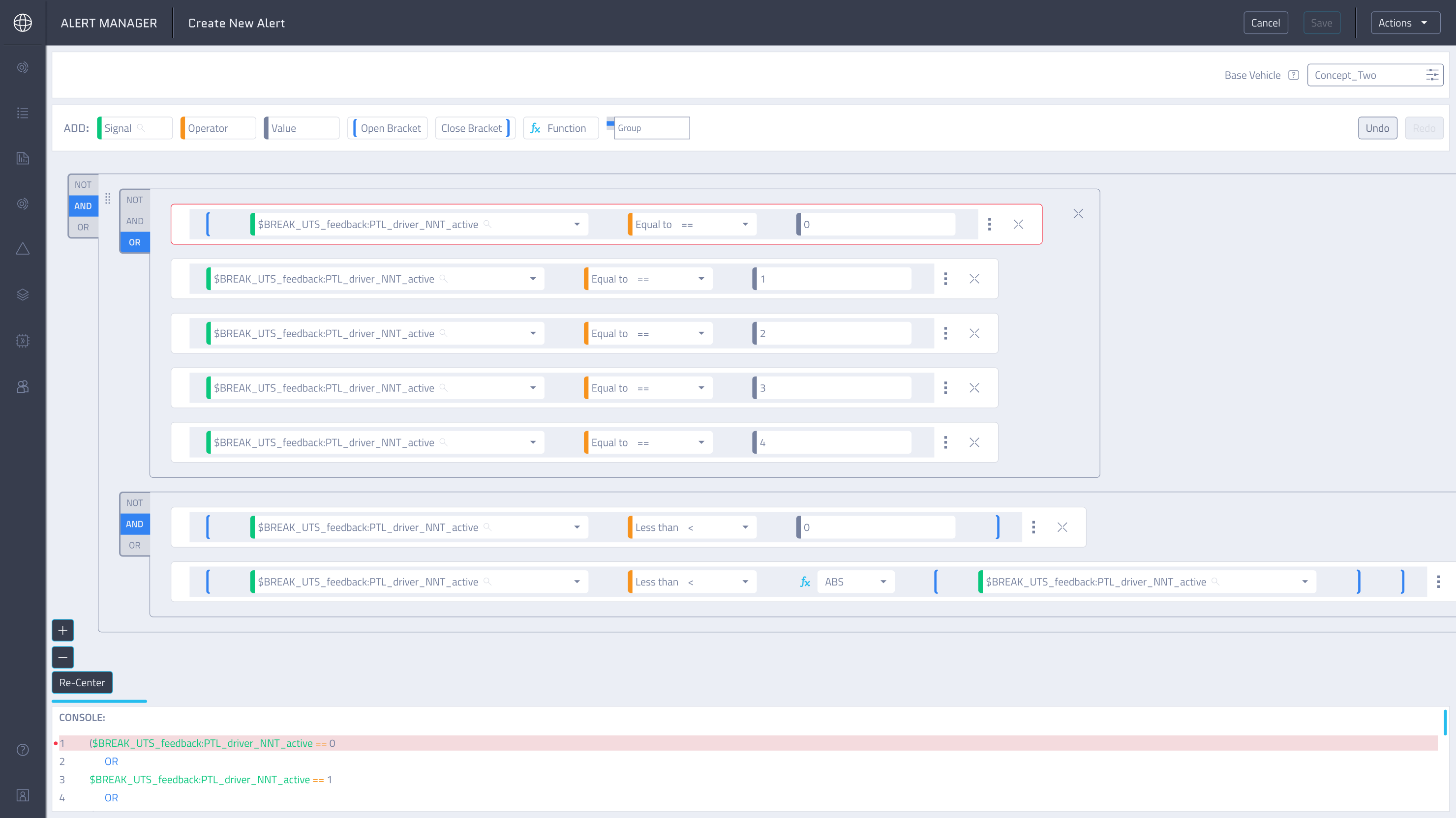 Alert Condition Builder