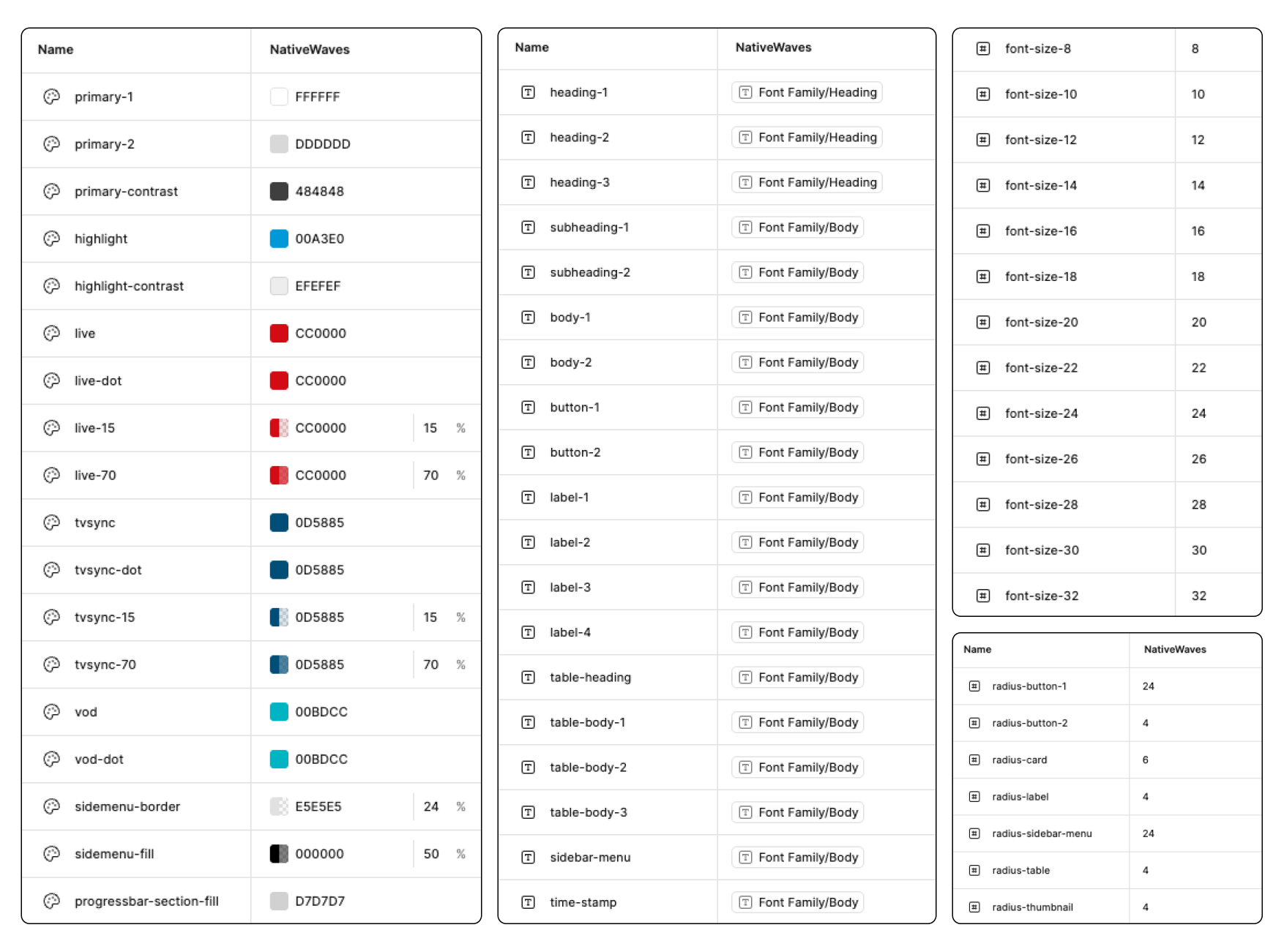 Every broadcaster wanted NativeWaves EXP to feel like their product — with their own colors, typography, and visual identity. While we already had a design token system in place, it had grown overly complex and difficult to maintain. As a Focus Group Driver and UX Designer, I helped lead a redesign that simplified the system while making theming faster, clearer, and more scalable.